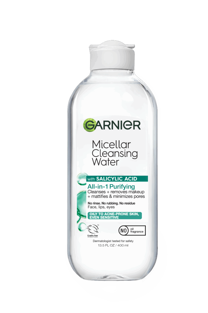 Best for Oily Skin: Garnier Micellar Cleansing Water with Salicylic Acid. Oily or breakout-prone skin? This micellar formula with salicylic acid removes makeup, SPF, and excess oil in one step — no rinsing needed.