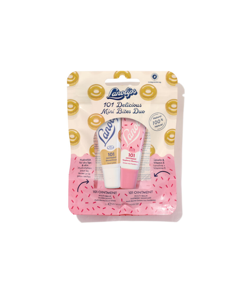 Using our richest lanolin with vitamin E and all-natural flavors, these balms penetrates and lock in moisture so you can glaze your lips in hydration. These super rich balms give long lasting hydration for extremely dry & chapped lips, skin patches, cuticles elbows & more. 101 Ointment Multi-Balm Glazed Donut: A sugar-coated treat for your lips. 101 Ointment Multi-Balm Raspberry Shortcake: A burst of sweet, tangy raspberries with rich buttery shortcake lip goodness.