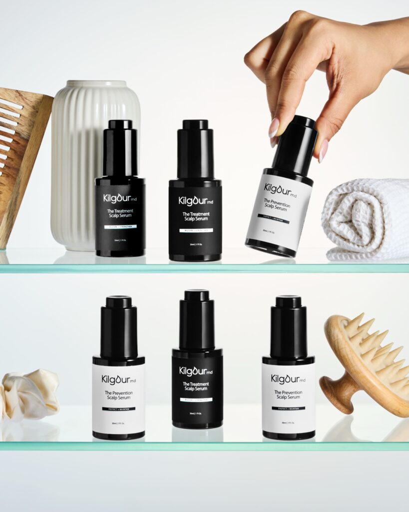Hormonal changes like menopause, childbirth, or weight loss medications don’t just cause hair thinning—they age your scalp up to 10x faster than your face. You could have an 80-year-old scalp before you’re 50. Stanford-trained dermatologist Dr. James Kilgour discovered this after watching his own mother struggle with thinning during menopause. The brittle or thinning hair follicles aren’t the core problem—your scalp is. There was actually a study which showed even dead follicles start growing thick and strong when placed in healthy, young scalp tissue. So these serums are just like anti-aging skincare for your scalp—dermatologist-grade ingredients that reverse accelerated aging and create the healthy, young environment that follicles need. In a clinical trial in menopausal women, this women was proven to visibly reverse hair thinning in just 90 days of daily use.