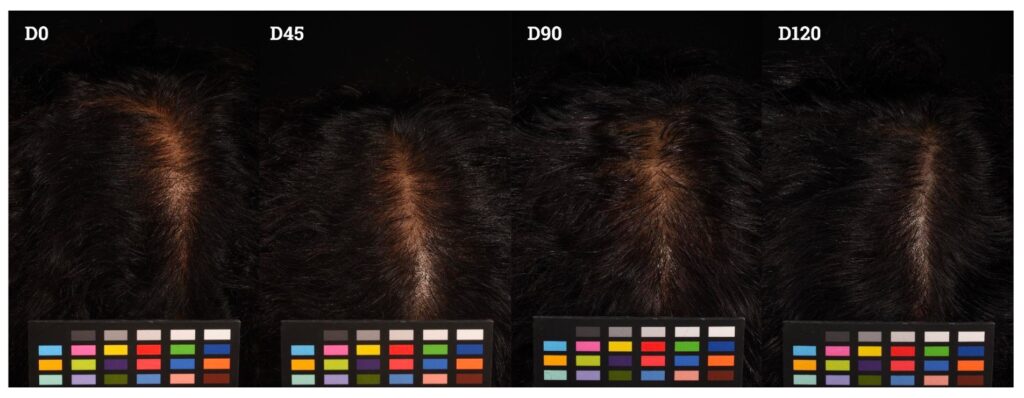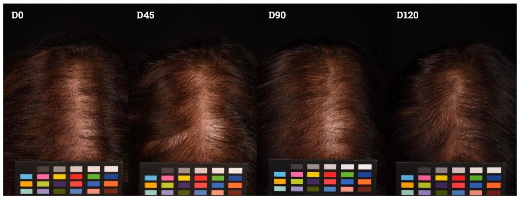 Clinical data supports this experience. In KilgourMD’s trials, women saw up to a 68% reduction in mature hair loss by week six — the long strands that shouldn’t be falling out. By around four months, many women showed visible improvement on the Ludwig Scale, the medical standard for measuring female hair thinning.